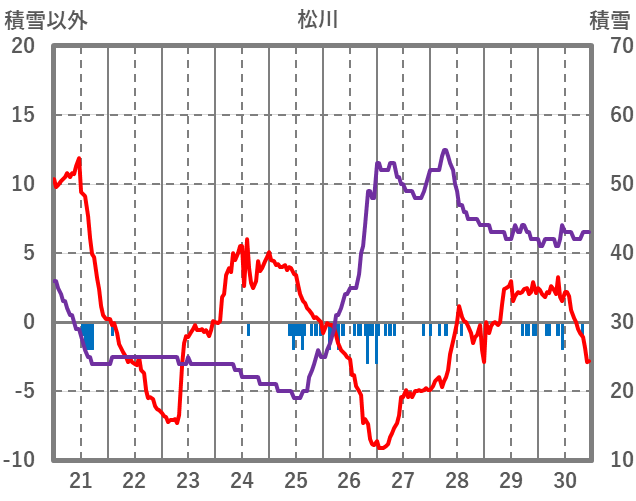| 日 | 時 | 気温 | 降水 | 風向/風速 | 日照 | 積雪 | 降雪 |