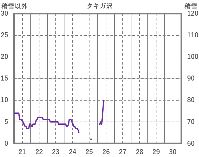 | 日 | 時 | 気温 | 降水 | 風向/風速 | 日照 | 積雪 | 降雪 |
