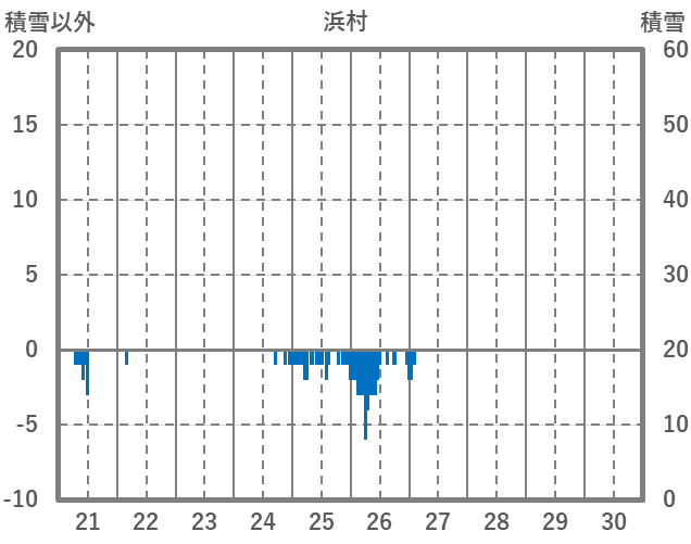 | 日 | 時 | 気温 | 降水 | 風向/風速 | 日照 | 積雪 | 降雪 |