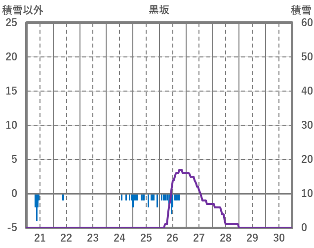 | 日 | 時 | 気温 | 降水 | 風向/風速 | 日照 | 積雪 | 降雪 |