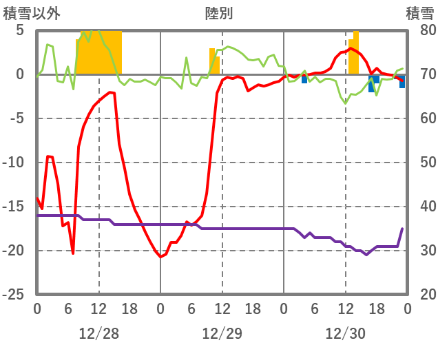| 日 | 時 | 気温 | 降水 | 風向/風速 | 日照 | 積雪 | 降雪 |