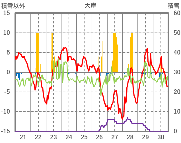 | 日 | 時 | 気温 | 降水 | 風向/風速 | 日照 | 積雪 | 降雪 |