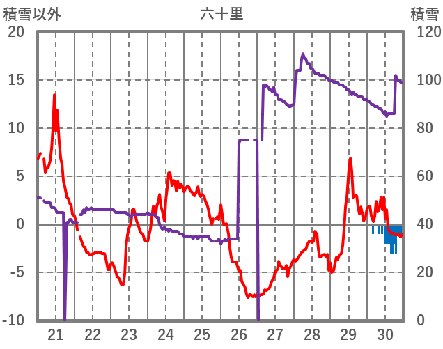 | 日 | 時 | 気温 | 降水 | 風向/風速 | 日照 | 積雪 | 降雪 |