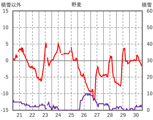 | 日 | 時 | 気温 | 降水 | 風向/風速 | 日照 | 積雪 | 降雪 |