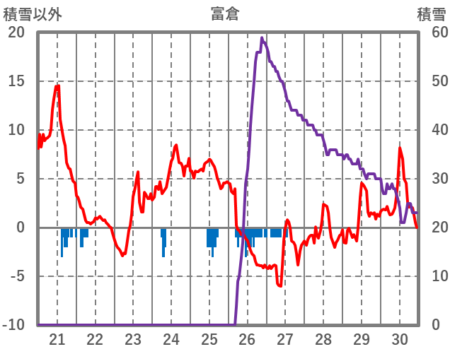 | 日 | 時 | 気温 | 降水 | 風向/風速 | 日照 | 積雪 | 降雪 |