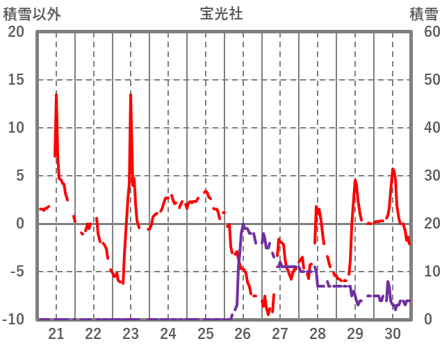 | 日 | 時 | 気温 | 降水 | 風向/風速 | 日照 | 積雪 | 降雪 |