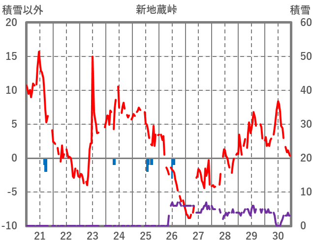 | 日 | 時 | 気温 | 降水 | 風向/風速 | 日照 | 積雪 | 降雪 |