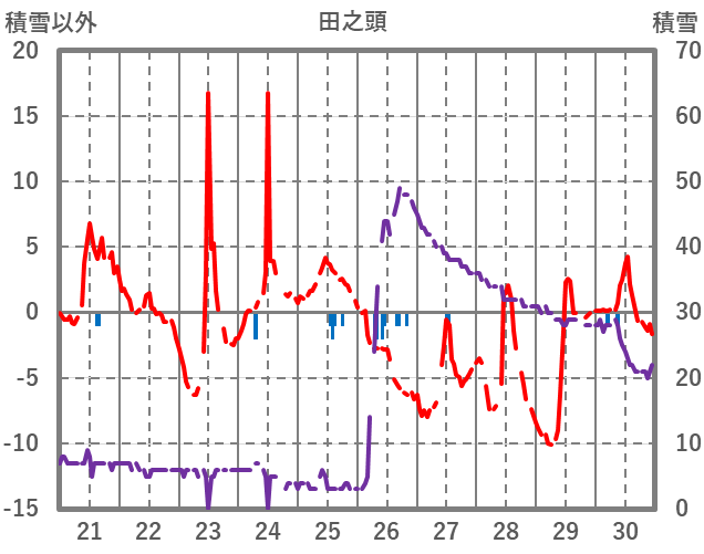 | 日 | 時 | 気温 | 降水 | 風向/風速 | 日照 | 積雪 | 降雪 |