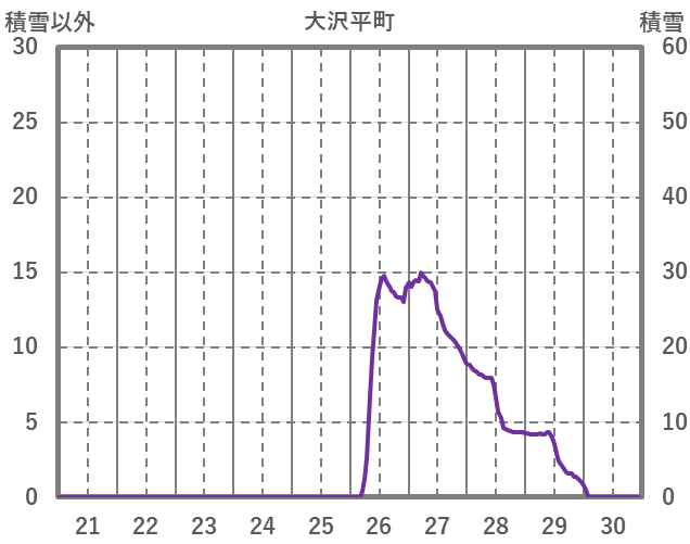 | 日 | 時 | 気温 | 降水 | 風向/風速 | 日照 | 積雪 | 降雪 |