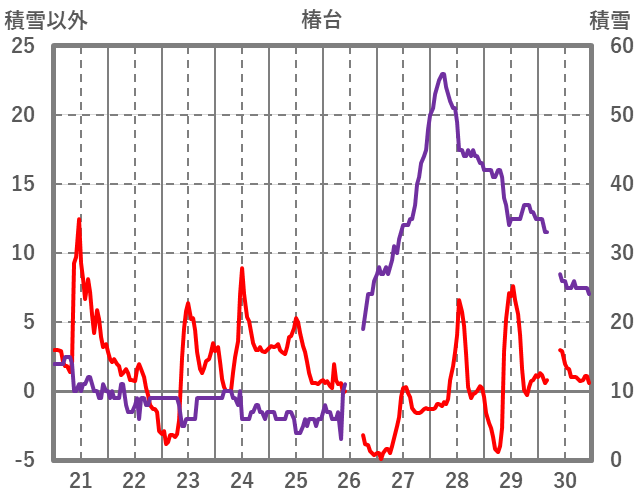 | 日 | 時 | 気温 | 降水 | 風向/風速 | 日照 | 積雪 | 降雪 |