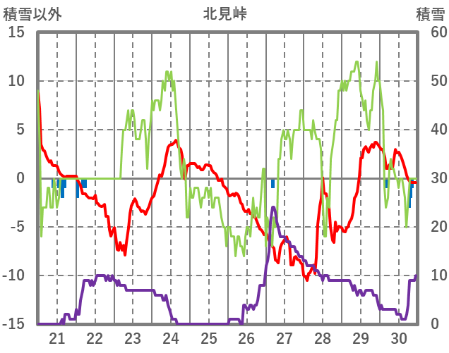 | 日 | 時 | 気温 | 降水 | 風向/風速 | 日照 | 積雪 | 降雪 |