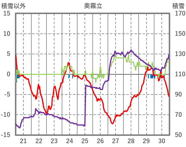 | 日 | 時 | 気温 | 降水 | 風向/風速 | 日照 | 積雪 | 降雪 |
