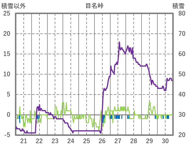 | 日 | 時 | 気温 | 降水 | 風向/風速 | 日照 | 積雪 | 降雪 |