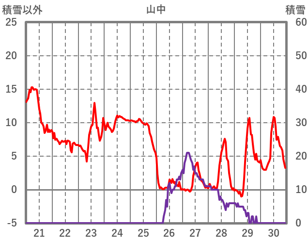 | 日 | 時 | 気温 | 降水 | 風向/風速 | 日照 | 積雪 | 降雪 |