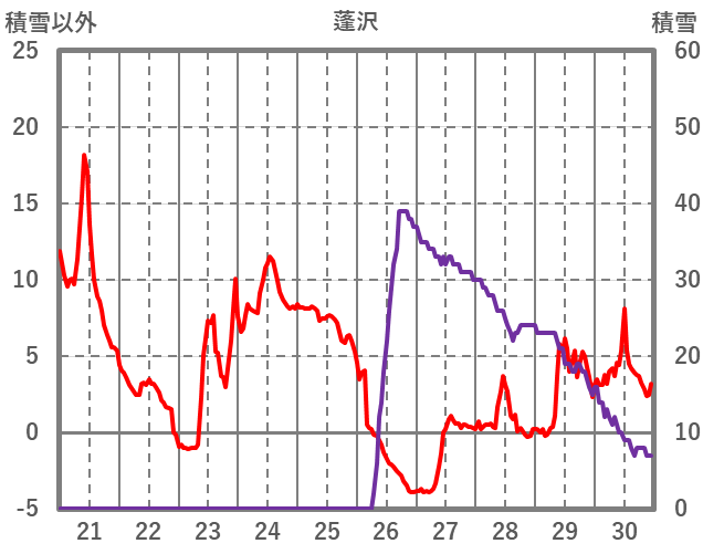 | 日 | 時 | 気温 | 降水 | 風向/風速 | 日照 | 積雪 | 降雪 |
