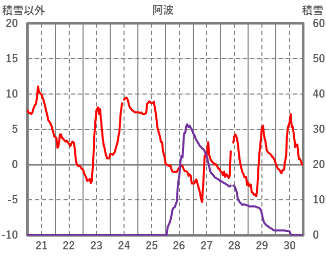 | 日 | 時 | 気温 | 降水 | 風向/風速 | 日照 | 積雪 | 降雪 |