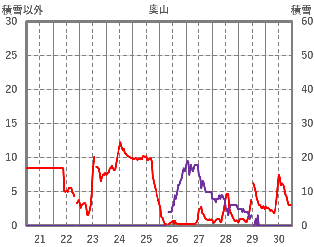 | 日 | 時 | 気温 | 降水 | 風向/風速 | 日照 | 積雪 | 降雪 |