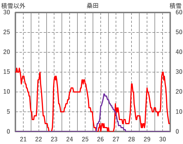 | 日 | 時 | 気温 | 降水 | 風向/風速 | 日照 | 積雪 | 降雪 |