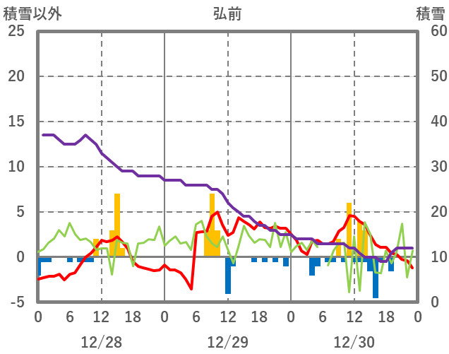 | 日 | 時 | 気温 | 降水 | 風向/風速 | 日照 | 積雪 | 降雪 |
