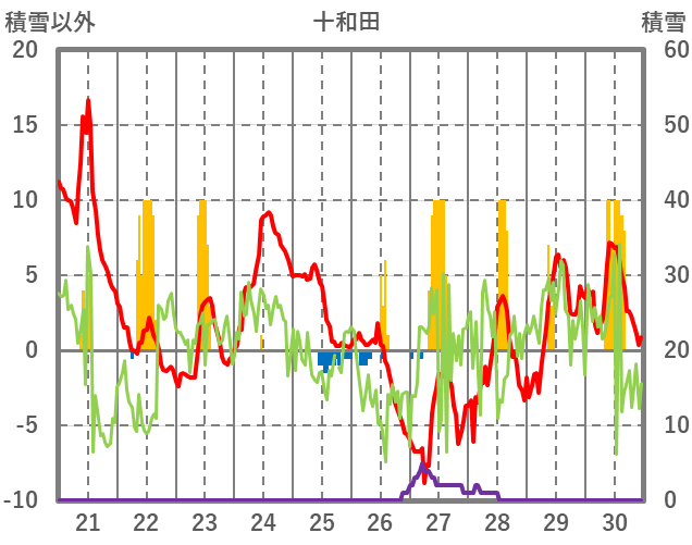 | 日 | 時 | 気温 | 降水 | 風向/風速 | 日照 | 積雪 | 降雪 |
