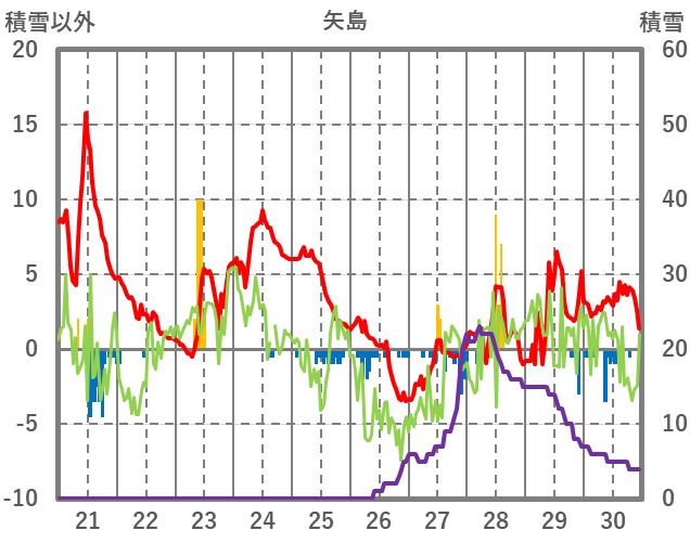 | 日 | 時 | 気温 | 降水 | 風向/風速 | 日照 | 積雪 | 降雪 |
