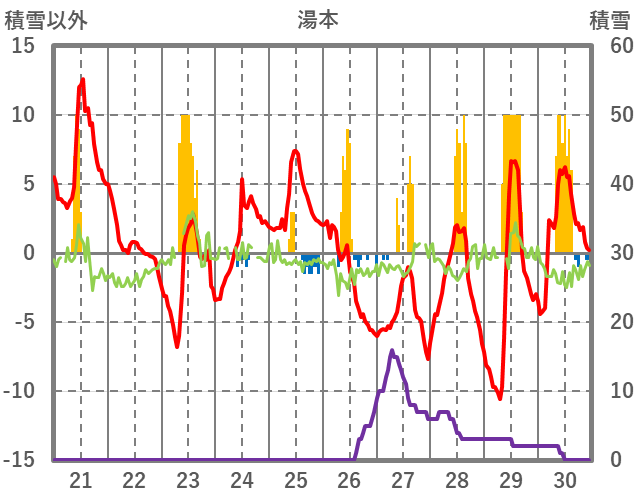 | 日 | 時 | 気温 | 降水 | 風向/風速 | 日照 | 積雪 | 降雪 |