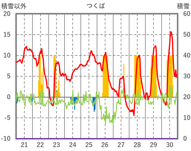 | 日 | 時 | 気温 | 降水 | 風向/風速 | 日照 | 積雪 | 降雪 |