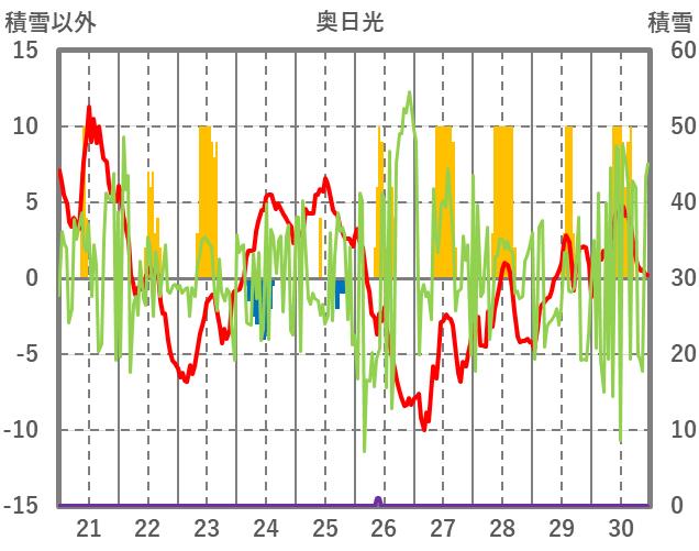 | 日 | 時 | 気温 | 降水 | 風向/風速 | 日照 | 積雪 | 降雪 |