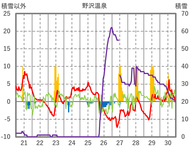 | 日 | 時 | 気温 | 降水 | 風向/風速 | 日照 | 積雪 | 降雪 |