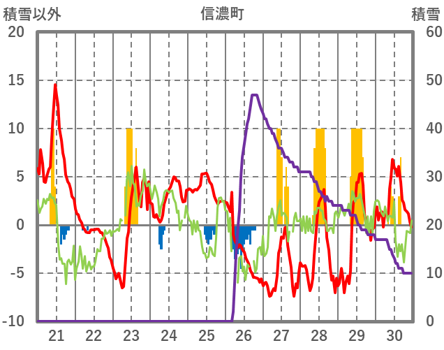 | 日 | 時 | 気温 | 降水 | 風向/風速 | 日照 | 積雪 | 降雪 |