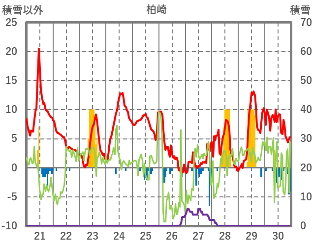 | 日 | 時 | 気温 | 降水 | 風向/風速 | 日照 | 積雪 | 降雪 |