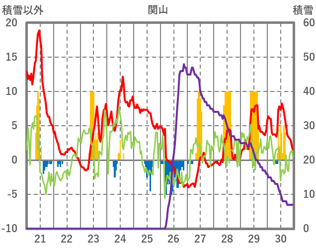 | 日 | 時 | 気温 | 降水 | 風向/風速 | 日照 | 積雪 | 降雪 |