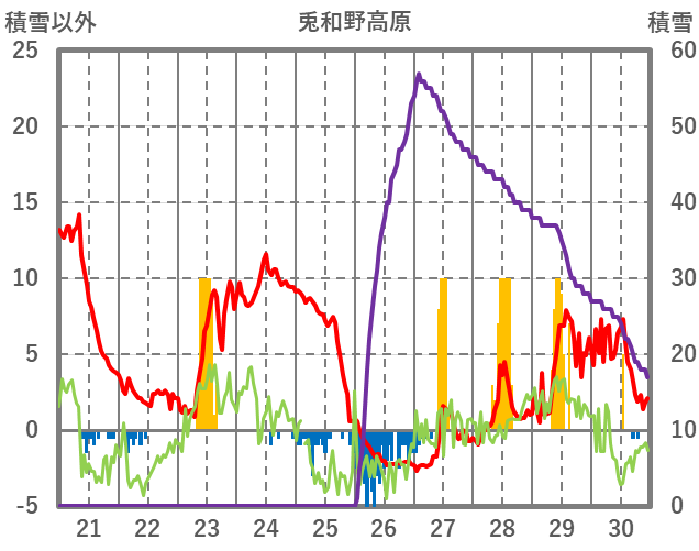 | 日 | 時 | 気温 | 降水 | 風向/風速 | 日照 | 積雪 | 降雪 |