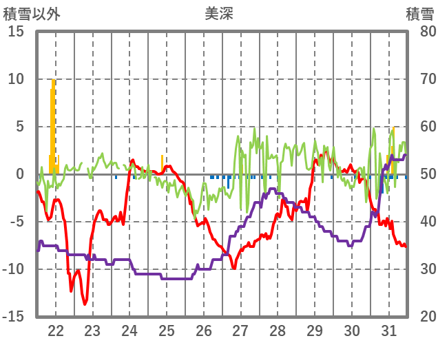 | 日 | 時 | 気温 | 降水 | 風向/風速 | 日照 | 積雪 | 降雪 |