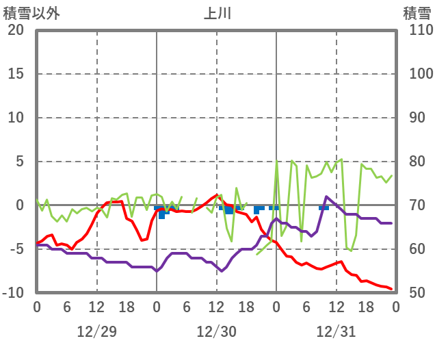 | 日 | 時 | 気温 | 降水 | 風向/風速 | 日照 | 積雪 | 降雪 |