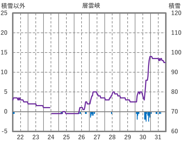 | 日 | 時 | 気温 | 降水 | 風向/風速 | 日照 | 積雪 | 降雪 |