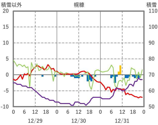 | 日 | 時 | 気温 | 降水 | 風向/風速 | 日照 | 積雪 | 降雪 |