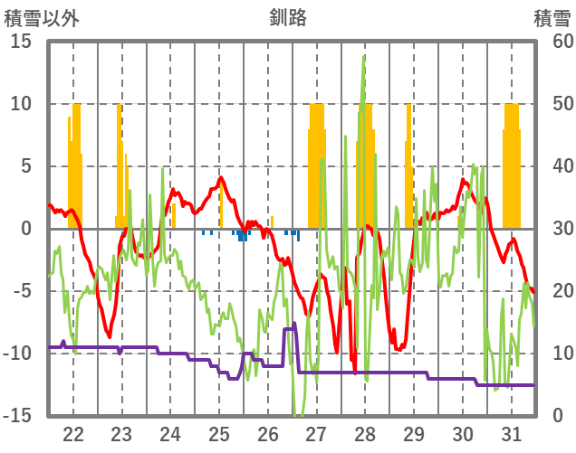 | 日 | 時 | 気温 | 降水 | 風向/風速 | 日照 | 積雪 | 降雪 |