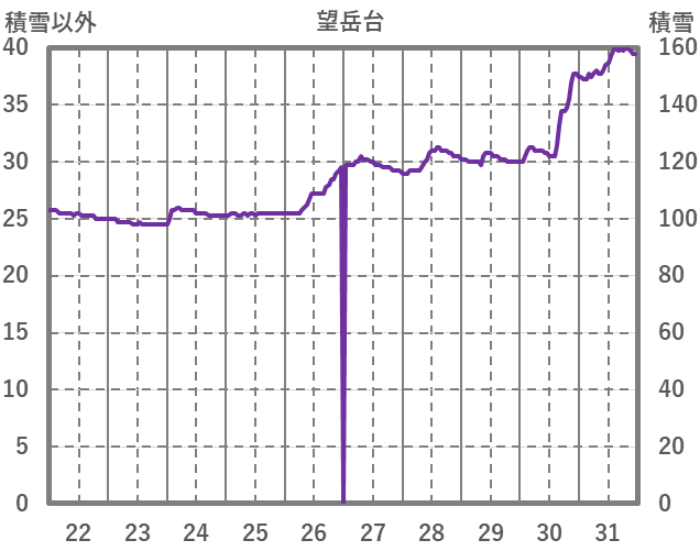 | 日 | 時 | 気温 | 降水 | 風向/風速 | 日照 | 積雪 | 降雪 |