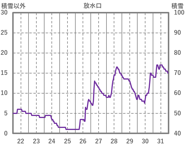 | 日 | 時 | 気温 | 降水 | 風向/風速 | 日照 | 積雪 | 降雪 |