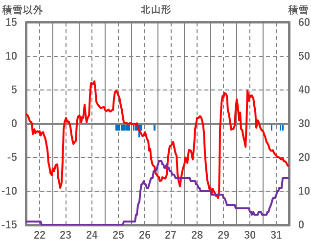 | 日 | 時 | 気温 | 降水 | 風向/風速 | 日照 | 積雪 | 降雪 |