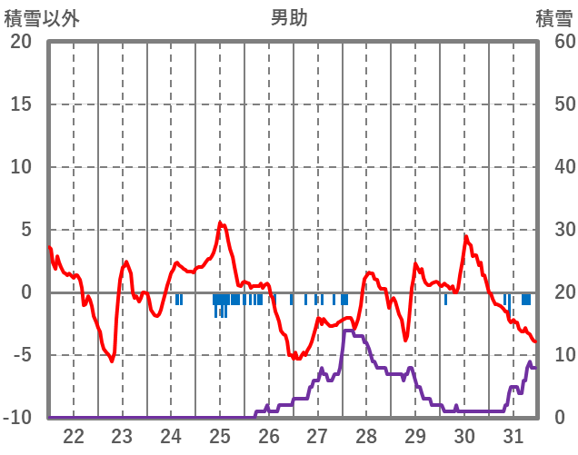 | 日 | 時 | 気温 | 降水 | 風向/風速 | 日照 | 積雪 | 降雪 |
