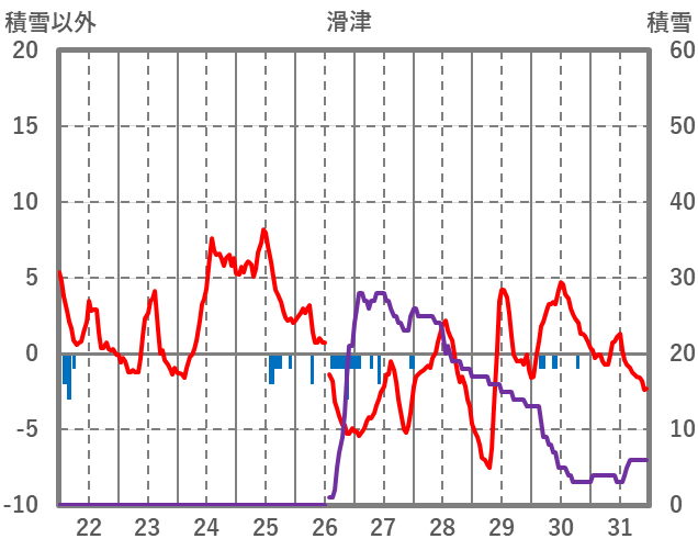 | 日 | 時 | 気温 | 降水 | 風向/風速 | 日照 | 積雪 | 降雪 |