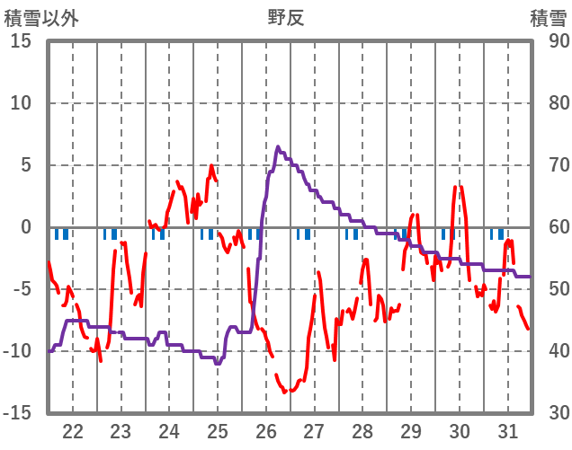 | 日 | 時 | 気温 | 降水 | 風向/風速 | 日照 | 積雪 | 降雪 |