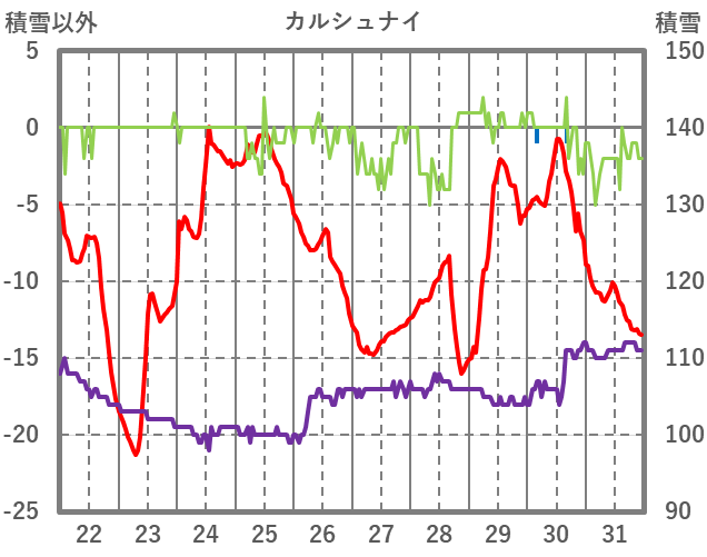 | 日 | 時 | 気温 | 降水 | 風向/風速 | 日照 | 積雪 | 降雪 |