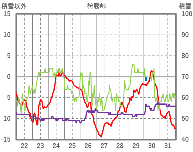 | 日 | 時 | 気温 | 降水 | 風向/風速 | 日照 | 積雪 | 降雪 |