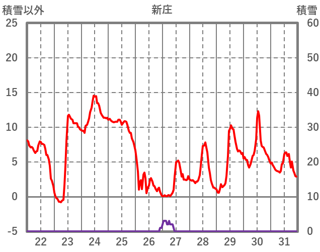 | 日 | 時 | 気温 | 降水 | 風向/風速 | 日照 | 積雪 | 降雪 |