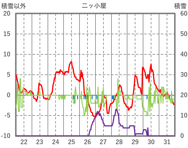 | 日 | 時 | 気温 | 降水 | 風向/風速 | 日照 | 積雪 | 降雪 |