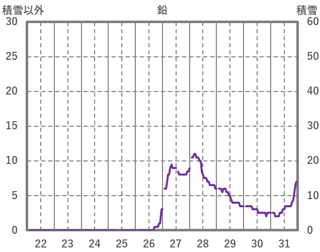 | 日 | 時 | 気温 | 降水 | 風向/風速 | 日照 | 積雪 | 降雪 |