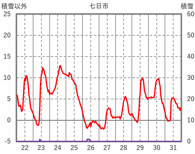 | 日 | 時 | 気温 | 降水 | 風向/風速 | 日照 | 積雪 | 降雪 |